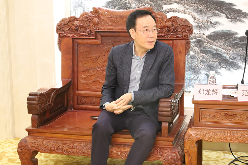 范同元董事长(左一)为郑龙辉会长一行介绍公司情况